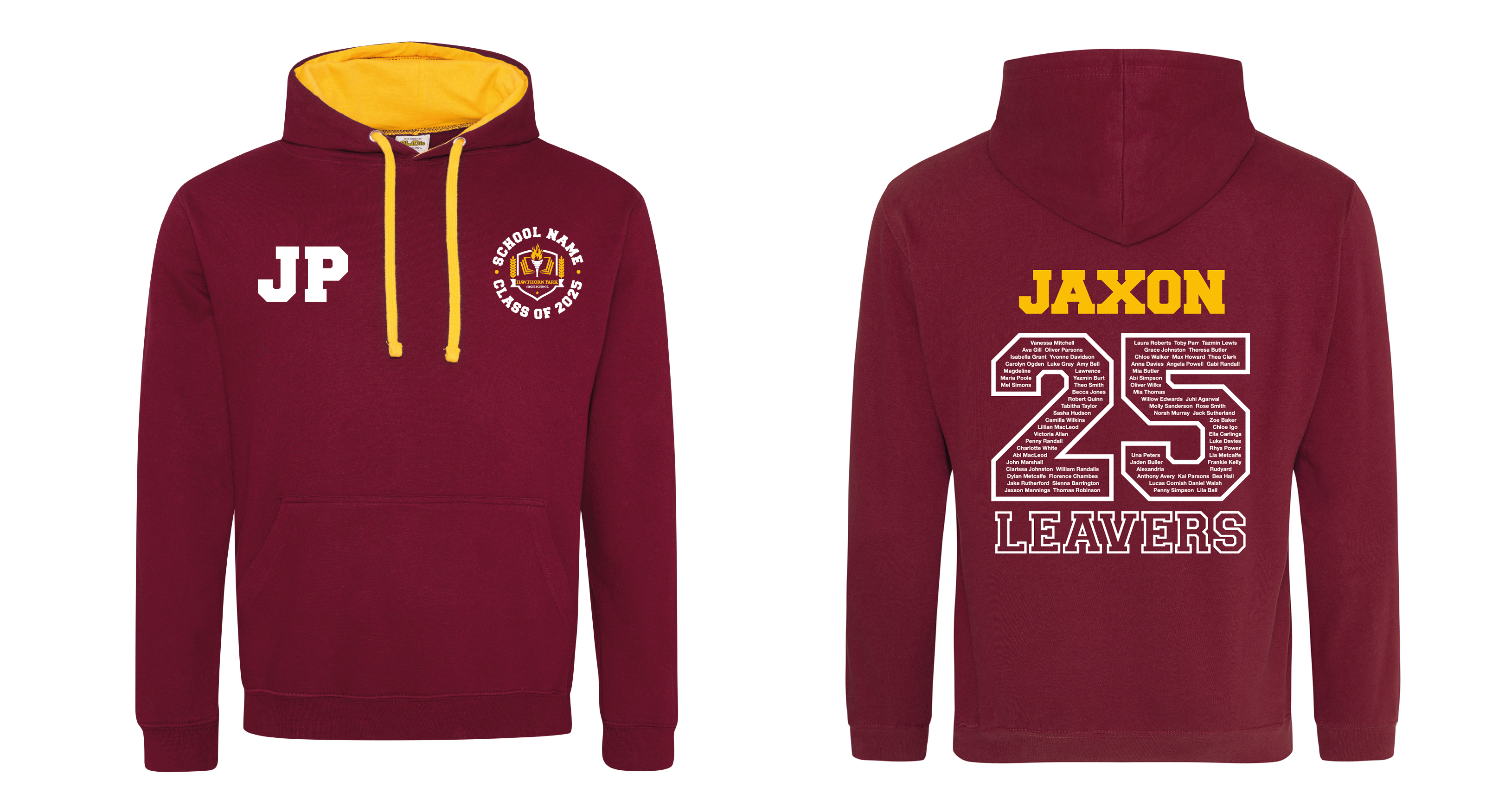 This will enable us to provide you with a fully personalised visual of your leavers hoodies,